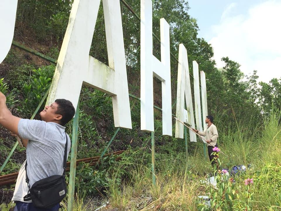 KERJA-KERJA PEMBERSIHAN DAN MENGECAT PAPAN TANDA BAHAU