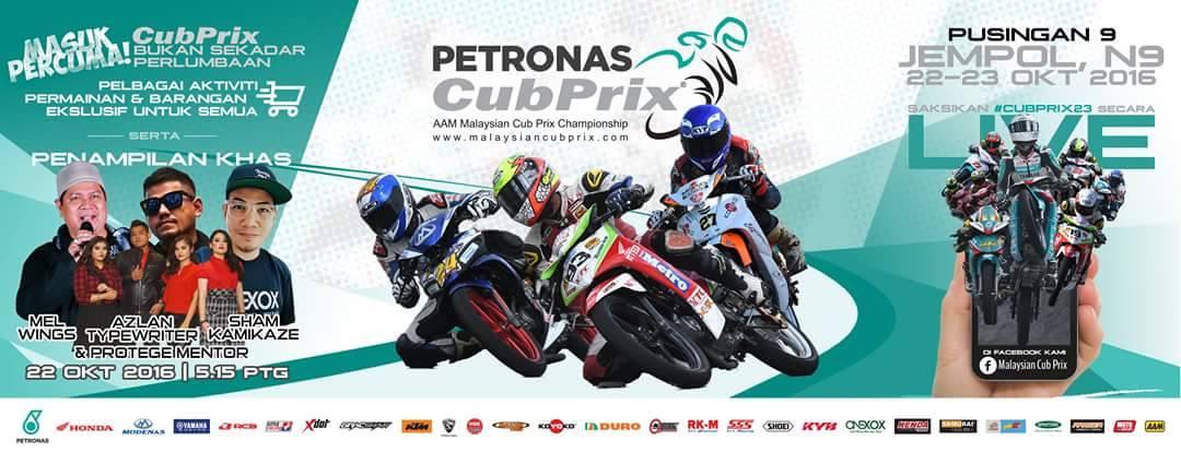 MARILAH BERSAMA-SAMA MEMERIAHKAN KEJOHANAN PETRONAS CUB PRIX PUSINGAN 9 DI JEMPOL PADA 22-23 OKTOBER 2016.PELBAGAI AKTIVITI MENANTI PENGUNJUNG SEPERTI PERMAINAN DAN JUGA BARANGAN EKSLUSIF MENANTI ANDA.JUGA PENAMPILAN KHAS DARI MEL WINGS, AZLAN TYPEWRITER BERSAMA PROTAGE MENTOR DAN JUGA SHAM KAMIKAZE PADA 22 OKTOBER 2016.AYUH MEMERIAHKAN LAGI PERLUMBAAN INI.