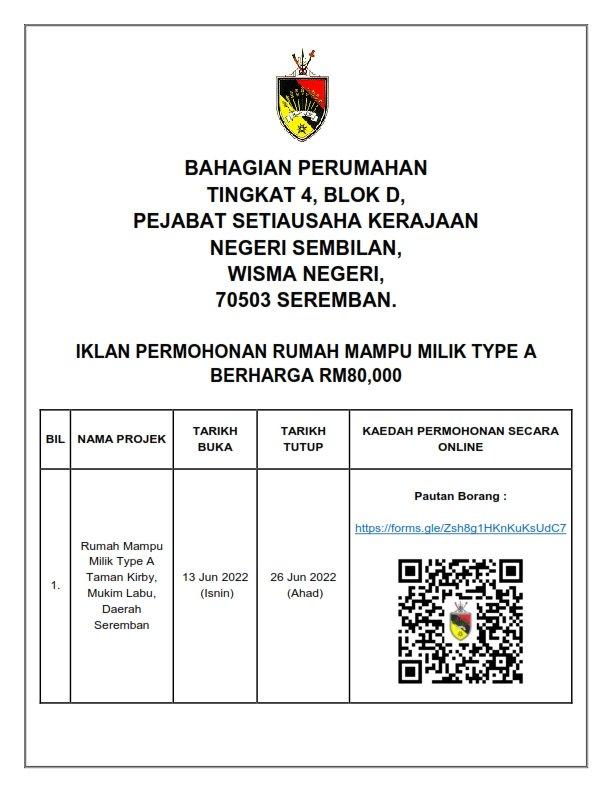 IKLAN PERMOHONAN RUMAH MAMPU MILIK TYPE A BERHARGA RM80,000
